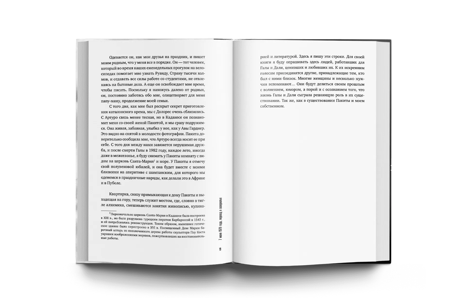 В закоулках маленького средиземноморского Кадакеса, наполненных запахами, красками и звуками улицы и моря, Доминик де Гаске ищет свидетелей той, уже ушедшей эпохи. В ее книге звучат голоса самых разных людей разных поколений, делящихся своими воспоминаниями о Гале и Дали.