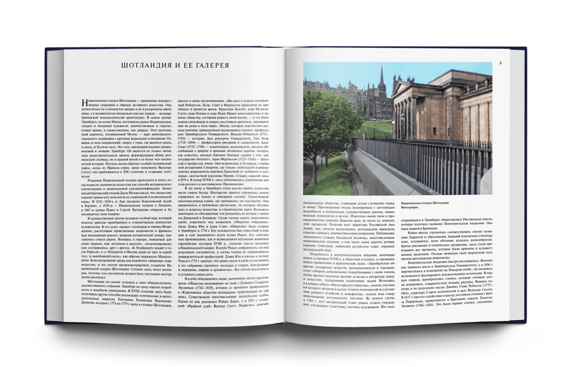 Национальная галерея Шотландии, состоящая из трех музеев, расположенных в самом центре Эдинбурга, была открыта в 1859 году. Собрание музея включает в себя работы таких прославленных мастеров, как Рафаэль и Тициан, Эль Греко и Веласкес, Ван Дейк и Гольбейн, Пуссен и Ватто, Рубенс и Рембрандт, Моне и Дега, есть Ван Гог и Гоген, Дали и Пикассо. В нем также хранятся полотна известных английских и шотландских живописцев. Альбом «Национальная галерея Шотландии» создавался при непосредственном участии генерального директора и сотрудников музея. Аннотации к картинам помогут читателю понять особенность стиля того или иного художника, а занимательный авторский рассказ — представить историю развития европейской живописи в целом.